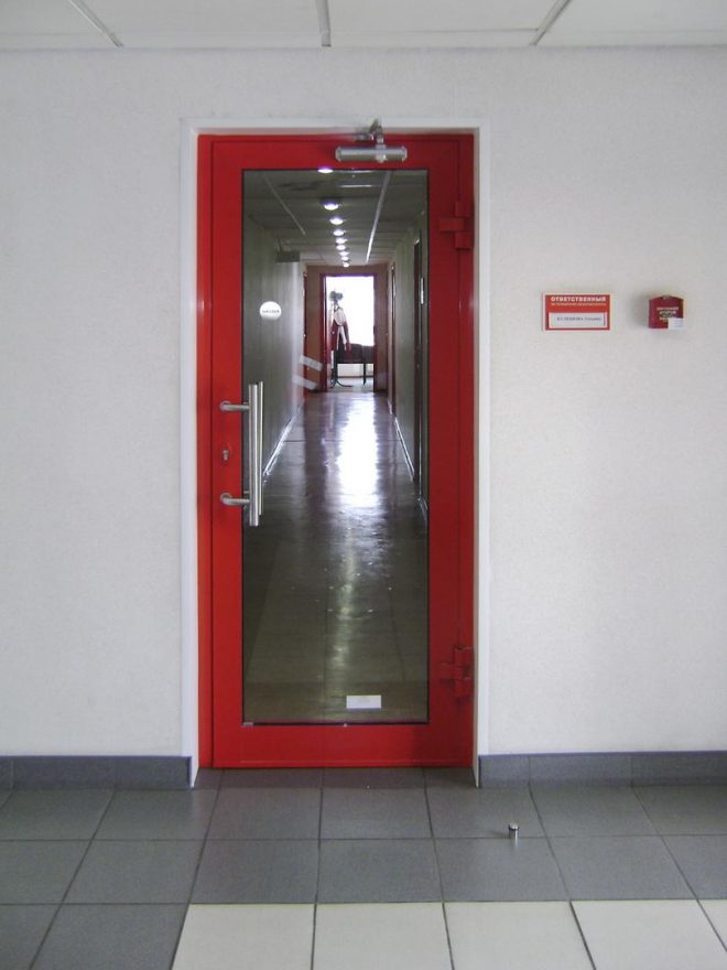 • W — время, в течение которого дверь со стеклянными вставками будет препятствовать проникновению теплового излучения в соседние зоны.
