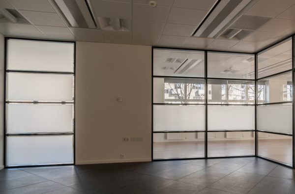 Противопожарные перегородки из негорючего материала могут изготавливаться как в полностью остекленном варианте, так и в частично остекленном исполнении. Основное предназначение таких конструкций — это разделение общего помещения на несколько отдельных рабочих зон. При этом преследуется несколько целей: