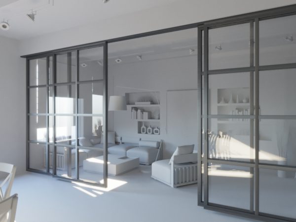 Раздвижные противопожарные перегородки могут изготавливаться как в полностью остекленном варианте, так и в частично остекленном исполнении. Основное предназначение таких конструкций — это разделение общего помещения на несколько отдельных рабочих зон. При этом преследуется несколько целей: